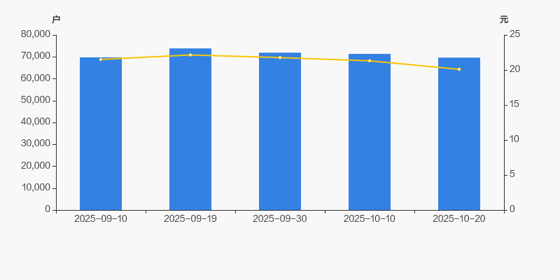 截至2025年10月20日,公司最新总股本为7.2亿股,其中流通股本为6.99亿股。户均持有流通股数量由上期的9790股上升至1万股,户均流通市值20.15万元。
