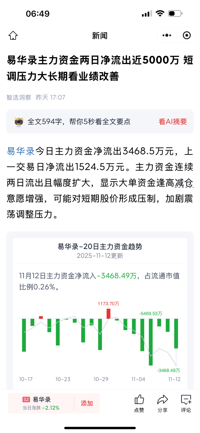 $易华录(SZ300212)$ 主力卖了2个月了,还在卖,什么时间到头