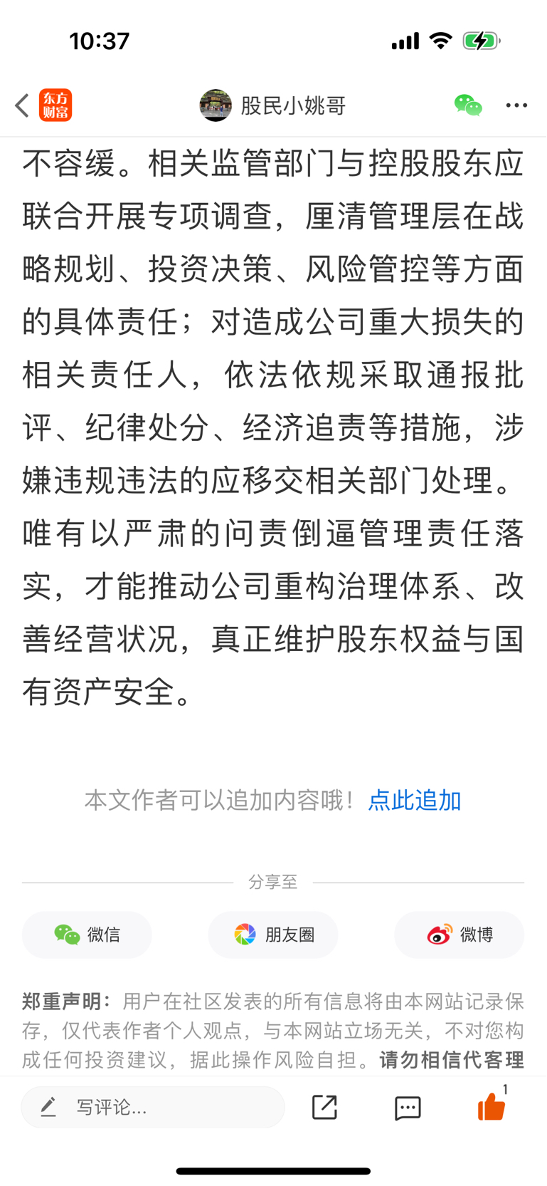 温馨提示: 1.根据《证券法》规定,禁止编造、传播虚假信息或者误导性信息,扰乱证券市场;2.用户在本社区发表的所有资料、言论等仅代表个人观点,与本网站立场无关,不对您构成任何投资建议。用户应基于自己的独立判断,自行决定证券投资并承担相应风险。《东方财富社区管理规定》