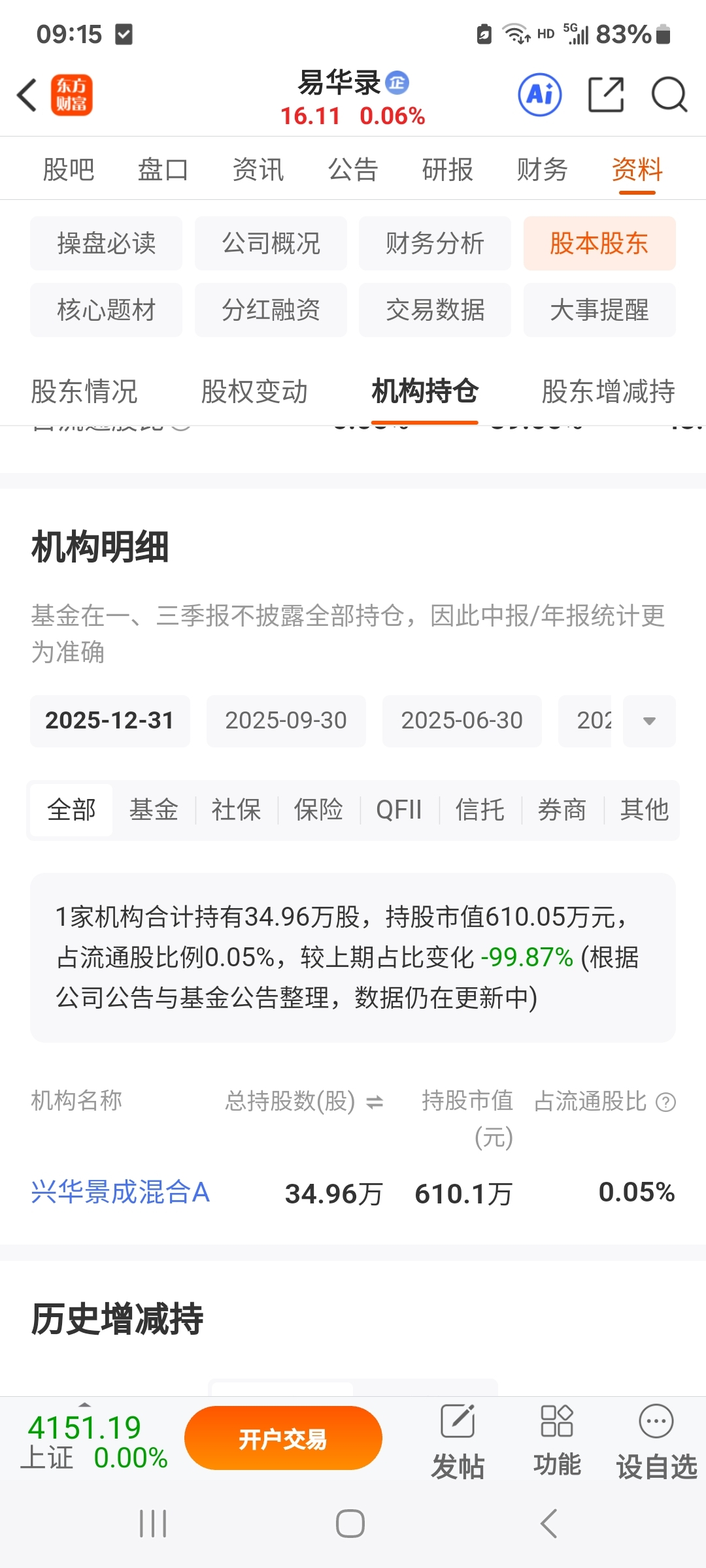 $易华录(SZ300212)$ 机构只有1家