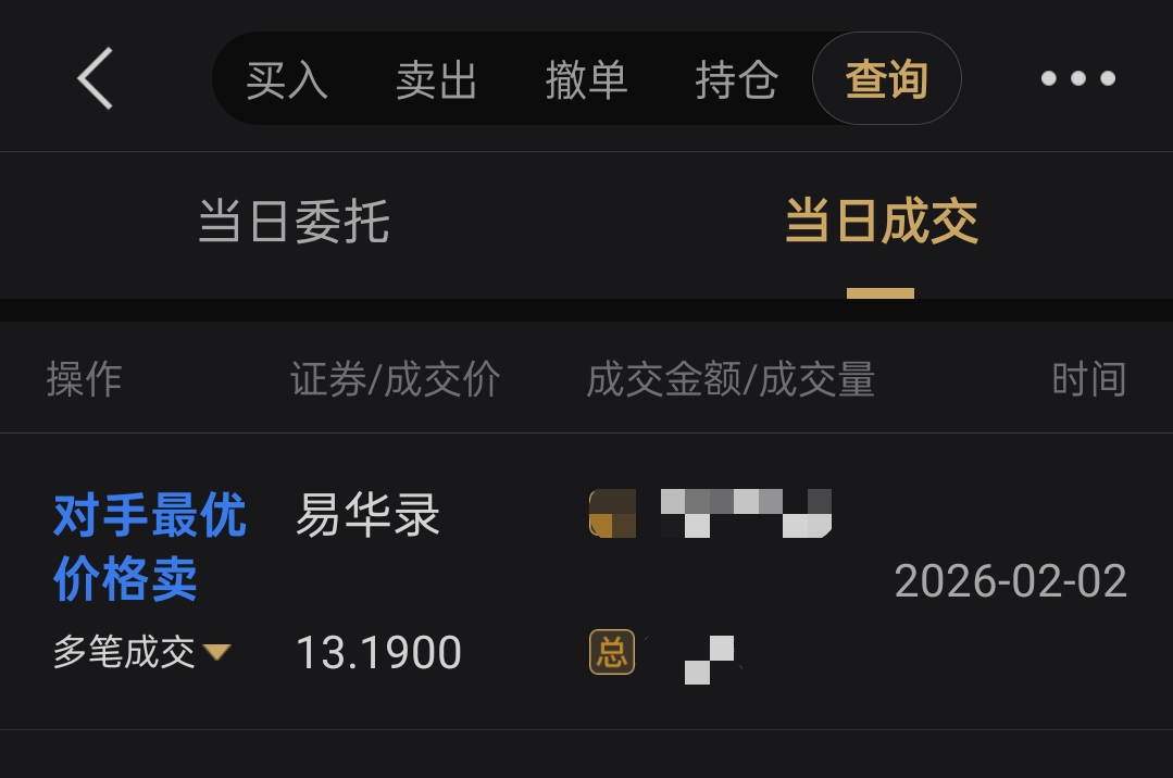 早上开盘清仓,对手最优价全成交了。