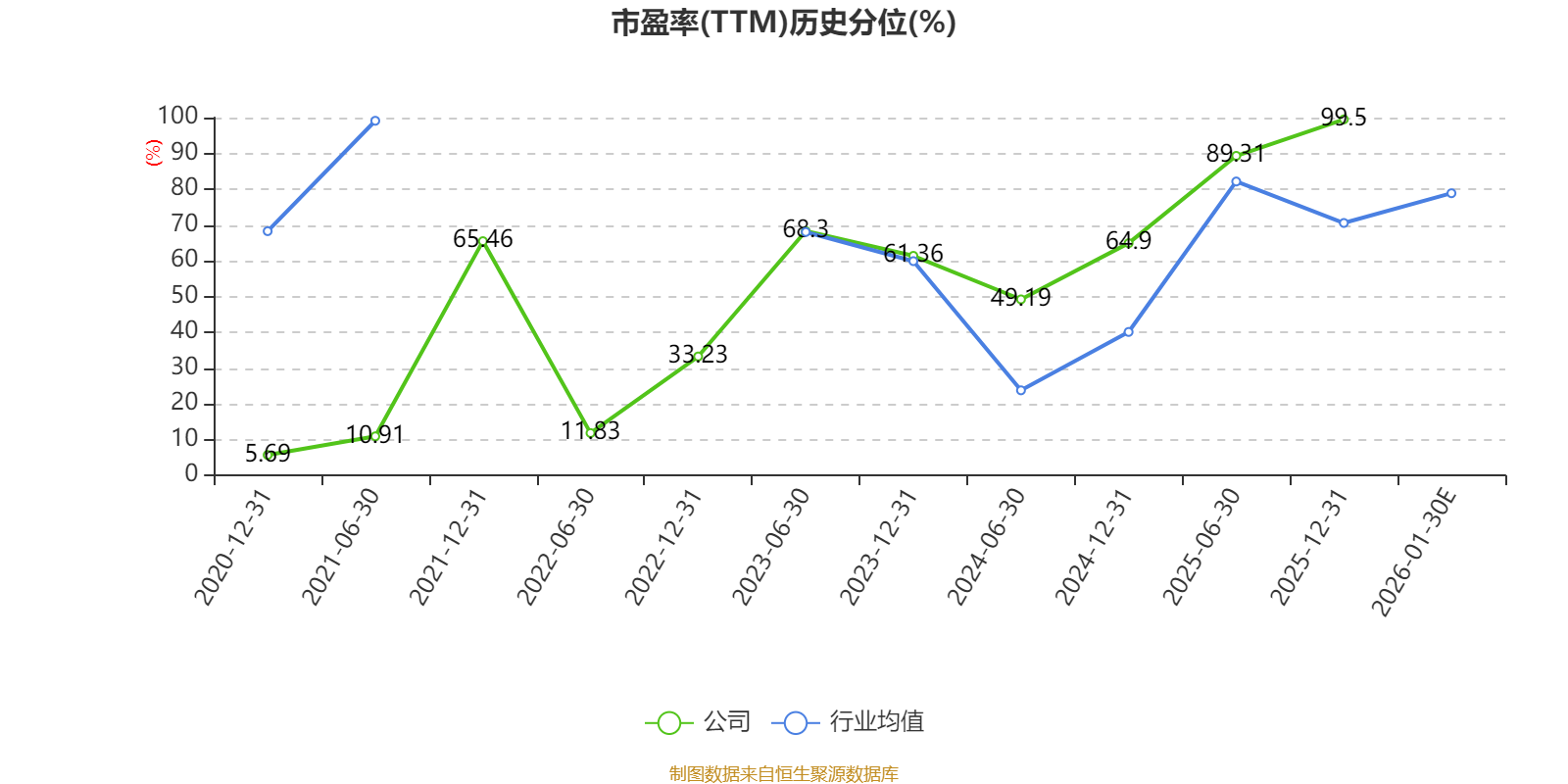 以本次披露业绩预告均值计算,公司近年市盈率(TTM)图如下所示: