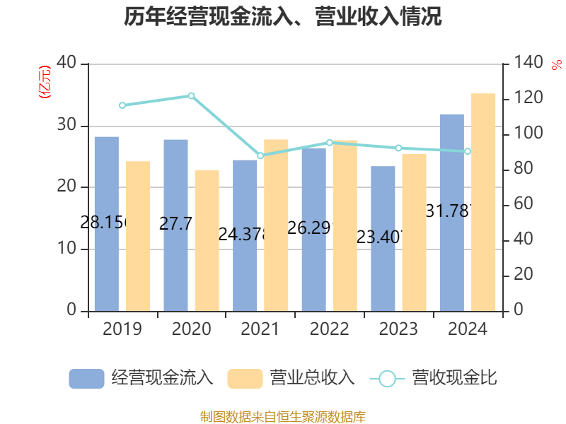 截至2024年,公司经营活动现金流净额为-2.12亿元,同比减少1.97亿元;筹资活动现金流净额9.07亿元,同比增加4.77亿元;投资活动现金流净额-5.5亿元,上年同期为-4.49亿元。