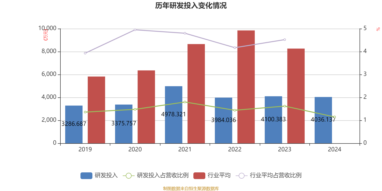 2024年全年,公司研发投入金额为4036.14万元,同比下降1.57%;研发投入占营业收入比例为1.15%,相比上年同期下降0.47个百分点。此外,公司全年研发投入资本化率为0%。