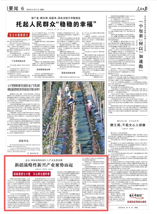 $日科化学(SZ300214)$ $新疆板块(BK0147)$ 人民日报看新疆 | 新疆战略性新兴产业聚势而起(砥砺奋进七十载 天山南北谱华章)