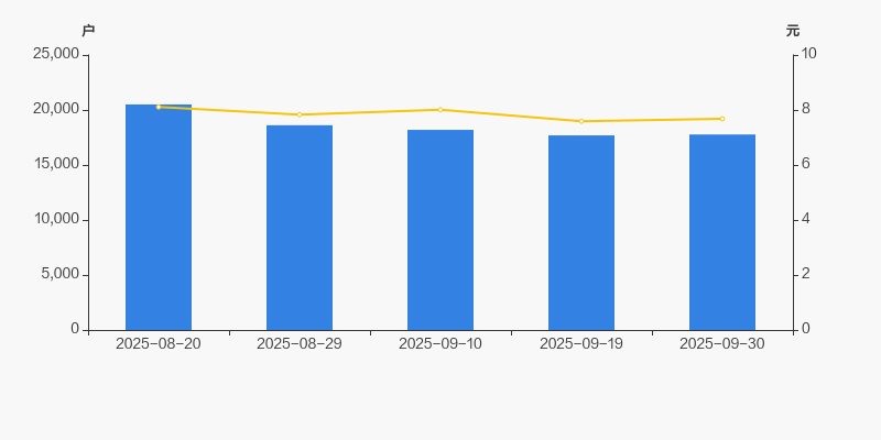 2025年8月20日至今,公司股东户数显著下降,区间跌幅为13.32%。2025年8月20日至2025年9月30日区间股价下降5.30%。