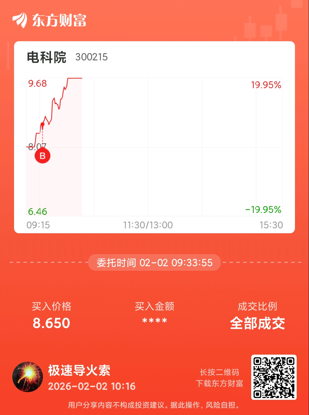 温馨提示: 1.根据《证券法》规定,禁止编造、传播虚假信息或者误导性信息,扰乱证券市场;2.用户在本社区发表的所有资料、言论等仅代表个人观点,与本网站立场无关,不对您构成任何投资建议。用户应基于自己的独立判断,自行决定证券投资并承担相应风险。《东方财富社区管理规定》