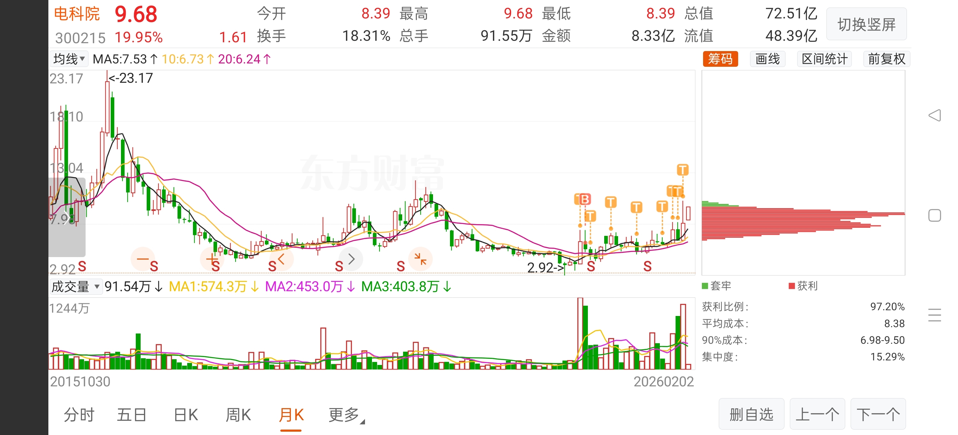 恐高的自己看一下月线,这四万亿,电科院能抓到多少?