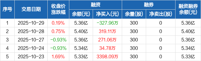 东方电热:融资净偿还327.96万元,融资余额5.36亿元(10-29)