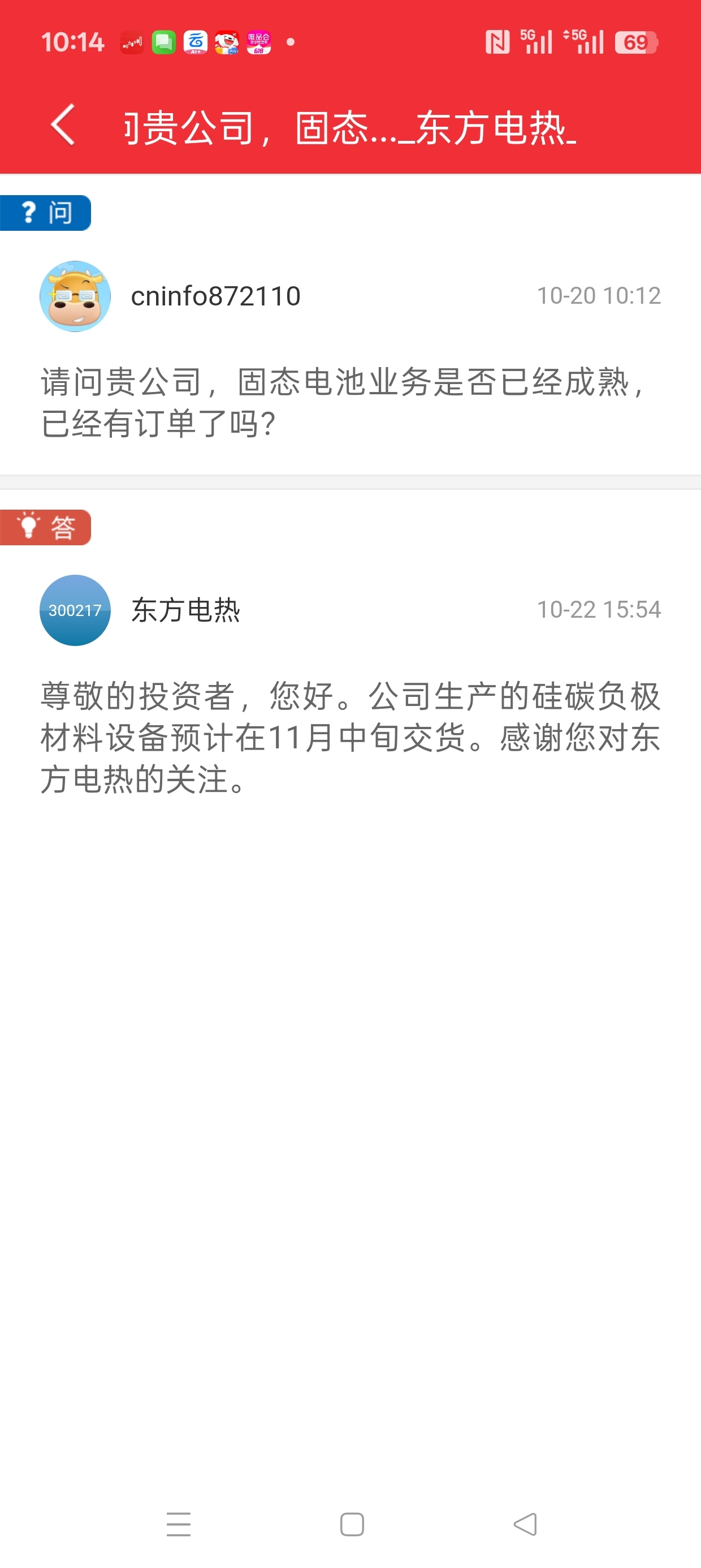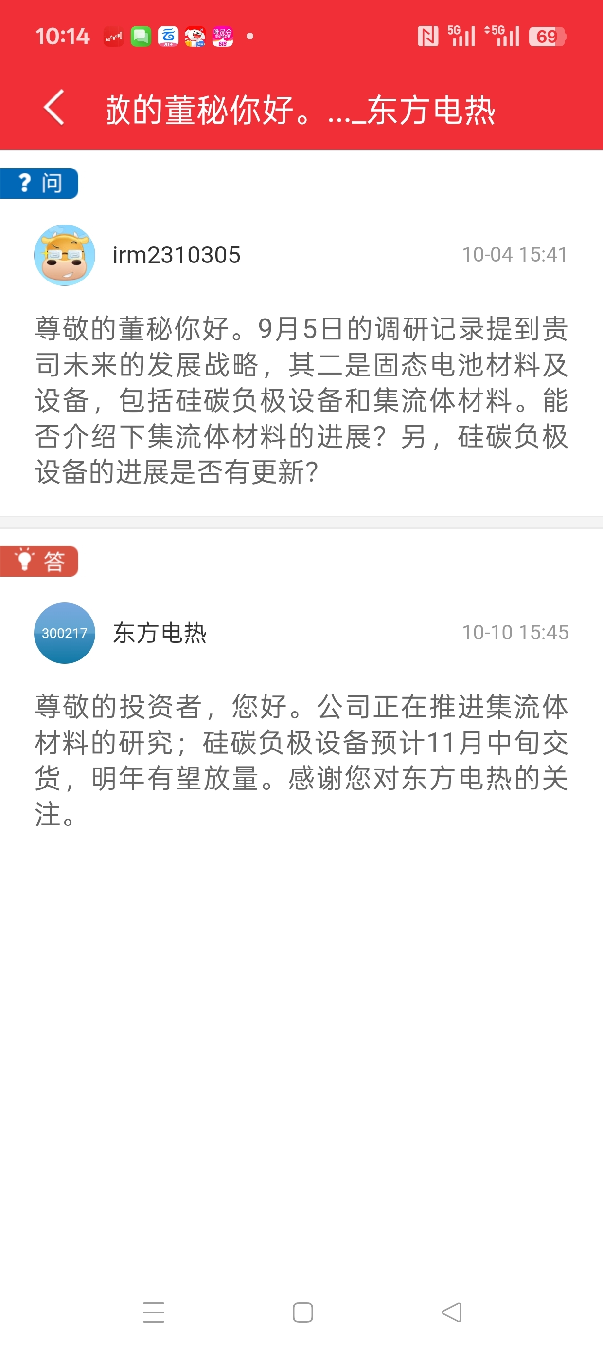 $东方电热(SZ300217)$ 大家有空的话一起向证监会投诉,打电话投诉,董秘针对投资者的提问的回复中虚报,欺骗,诱导(10月份回复说碳硅材料设备11月中旬交付,结果到了11月中旬回复中说还在生产制造),配合大股东偷偷减持,造成股价持续下跌损害投资者利益!