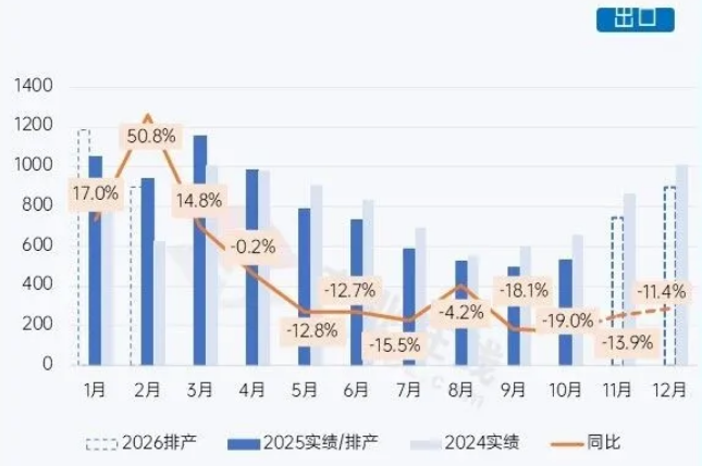 随着11、12月进入传统的出口备货季,出口规模环比逐步提升,同比下降趋势也开始表现收窄。到2026年初,空调市场的出口驱动性将逐步增强,企业的生产也将向侧重出口转换。