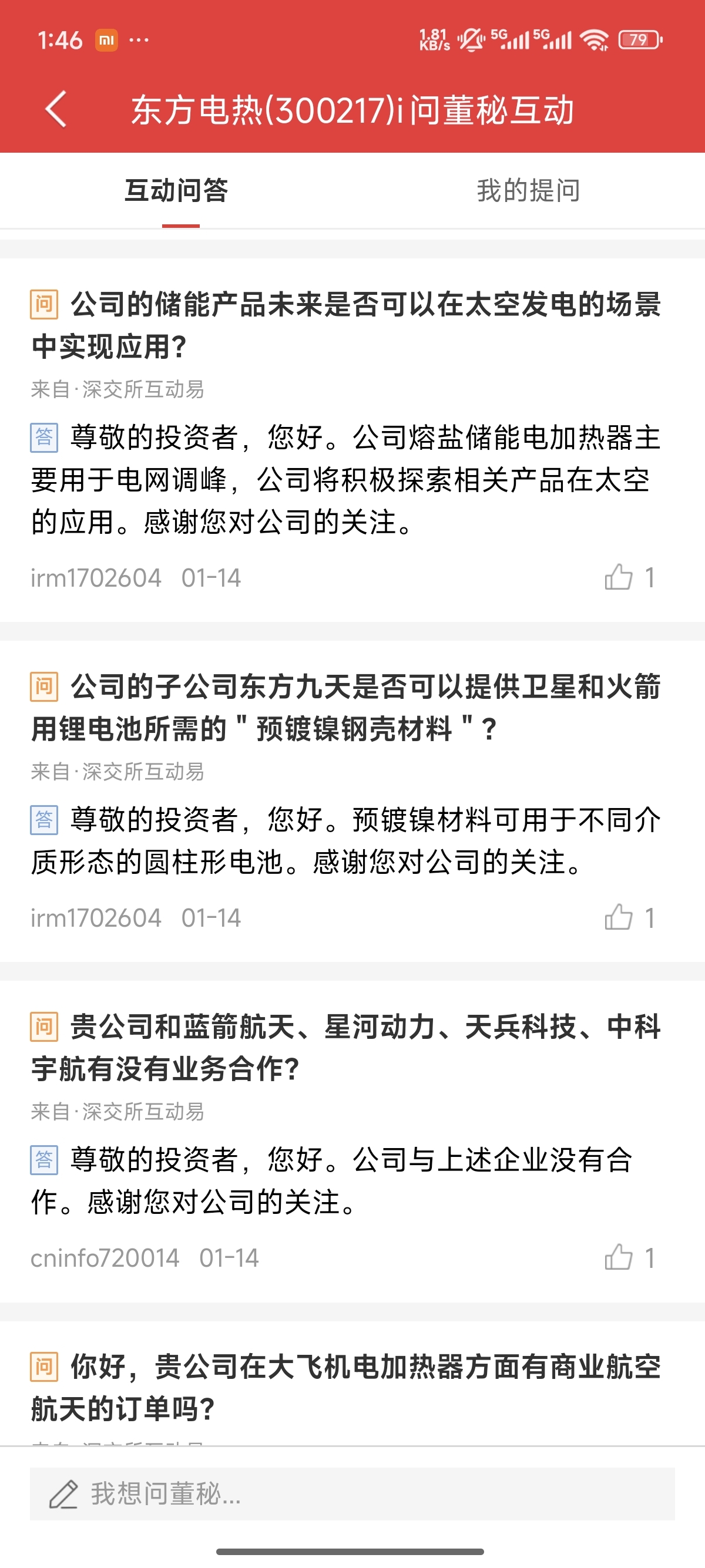 $东方电热(SZ300217)$ 太空发电董秘回复市场不认可