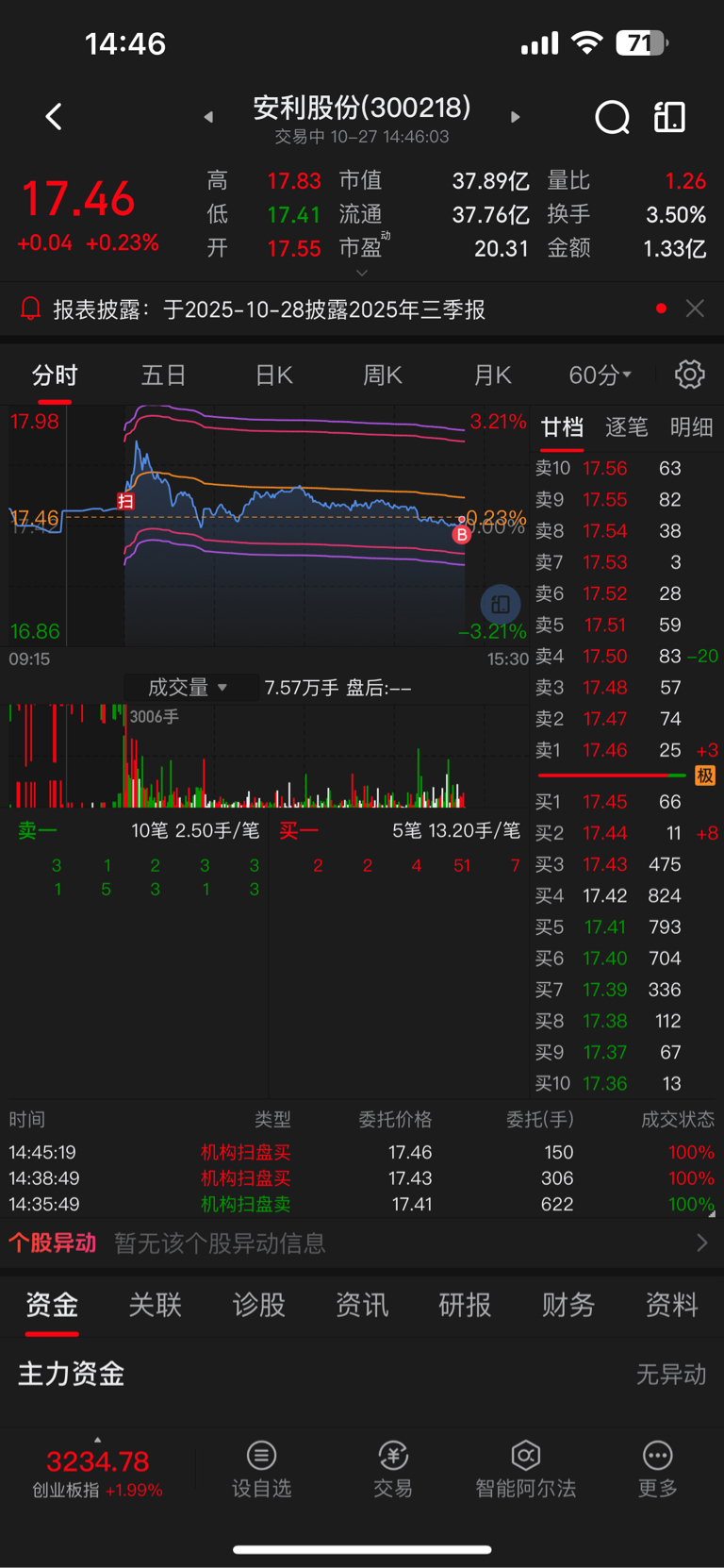 $安利股份(SZ300218)$ 配合大盘开个小仓!
