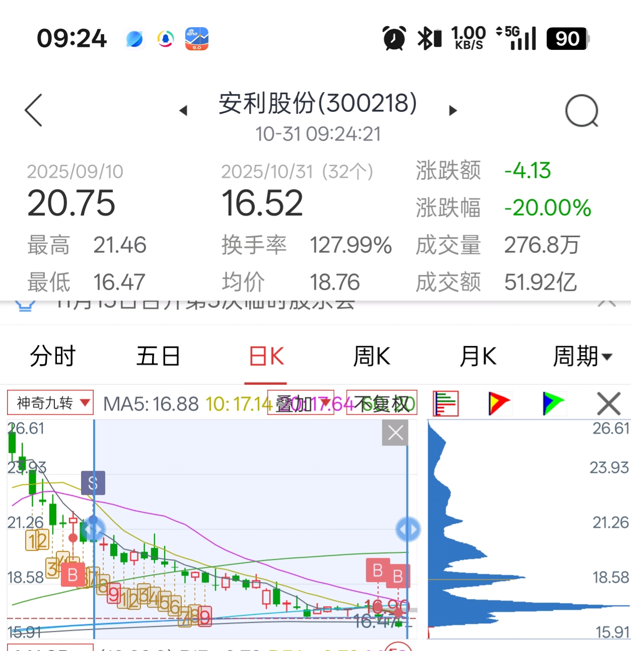 $安利股份(SZ300218)$ 从上次清仓,这小子都跌20%了,确实能跌