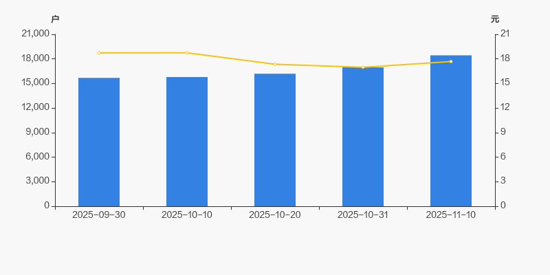 自2025年9月30日以来,公司股东户数连续4期上涨,截至目前增幅为17.57%。2025年9月30日至2025年11月10日区间股价下降5.66%。
