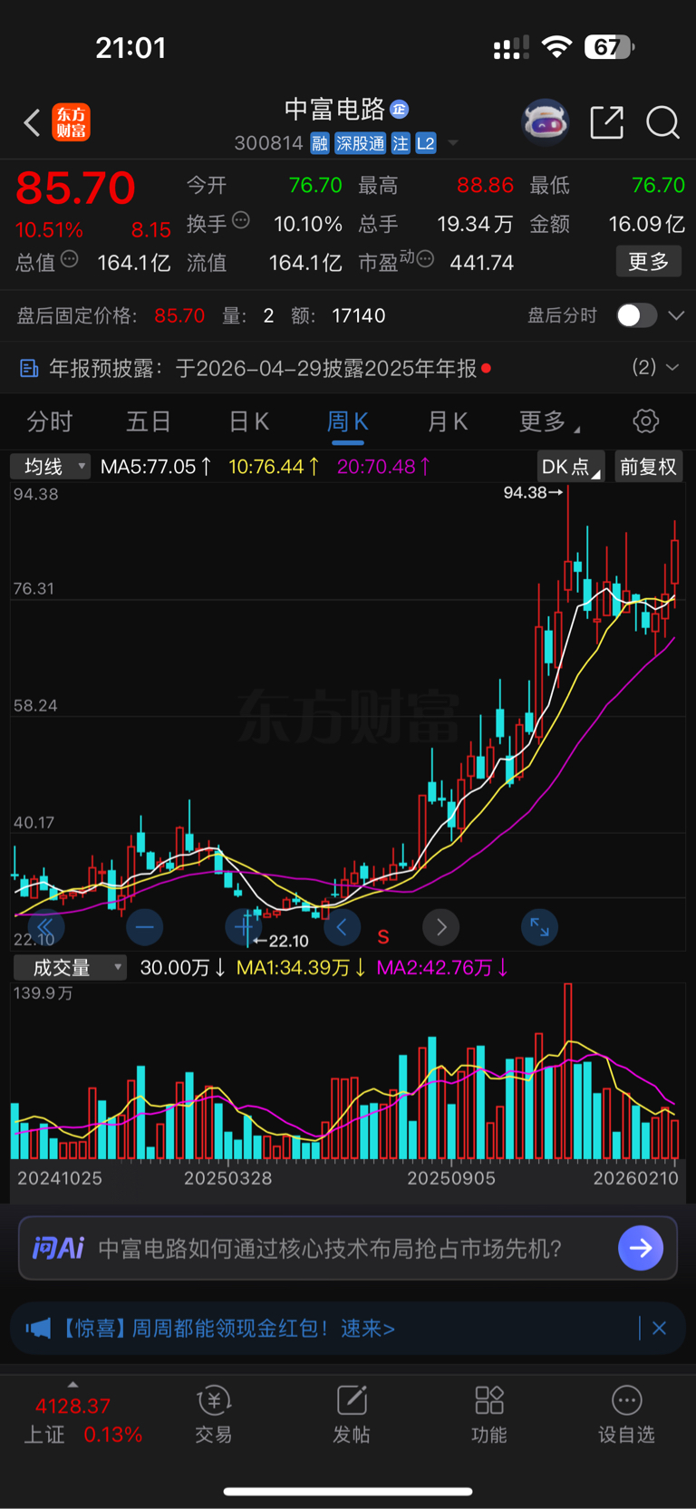 $鸿利智汇(SZ300219)$ 就是一条虫,看看中富股份,这才是赚钱的票子