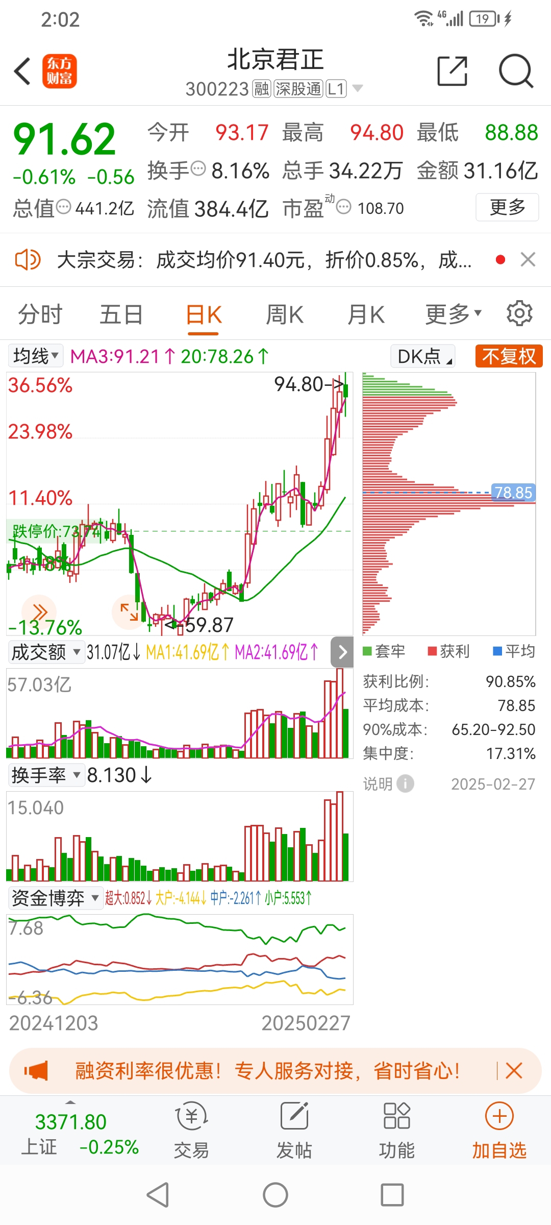 方军北京君正,仓位2成,如果仓位太高,坚决割掉。