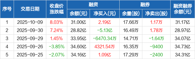 北京君正:融资净买入2.19亿元,融资余额31亿元(10-09)