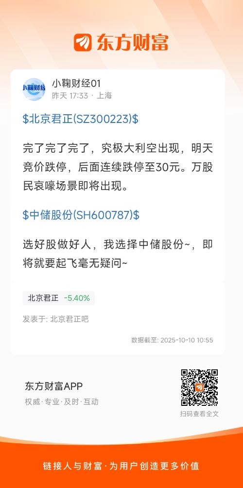 温馨提示: 1.根据《证券法》规定,禁止编造、传播虚假信息或者误导性信息,扰乱证券市场;2.用户在本社区发表的所有资料、言论等仅代表个人观点,与本网站立场无关,不对您构成任何投资建议。用户应基于自己的独立判断,自行决定证券投资并承担相应风险。《东方财富社区管理规定》