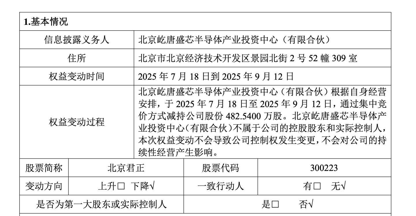 就在北京君正发布拟赴港上市公告当天,公司同时发布了关于持股5%以上股东减持公告,显示股东北京屹唐盛芯半导体产业投资中心(有限合伙)已于7月18日至9月12日期间,通过集中竞价方式减持482.54万股,减持比例近1%,套现近4亿元。另外,9月17日到24日间,公司董事李杰合计减持80万股,成交均价为83.97元,合计套现约6718万元。而根据此前披露的《部分股东及董事、高级管理人员减持股份预披露公告》,四海军芯、冼永辉、张燕祥和张敏等股东也均有减持计划。