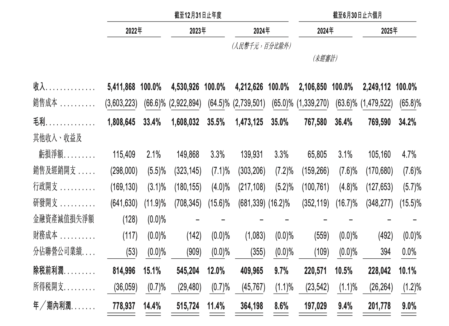 招股书显示,公司营业收入从2022年的54.12亿元降至2024年的42.13亿元,整体下滑22.15%;归母净利润则从2022年的7.79亿元降至2024年的3.66亿元,整体下滑53.27%。这种趋势在2025年上半年看似有所缓和,公司实现营业收入22.49亿元,同比增长6.74%;归母净利润2.02亿元,同比增长2.41%。