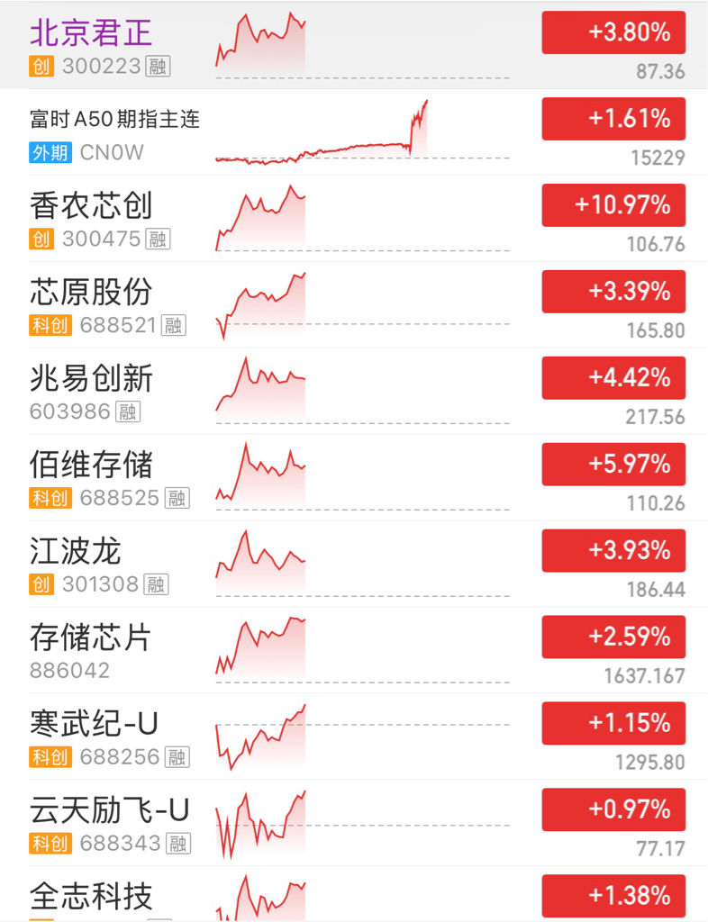 $北京君正(SZ300223)$ 这波这些存储芯片里哪个没翻倍?只有北京君正
