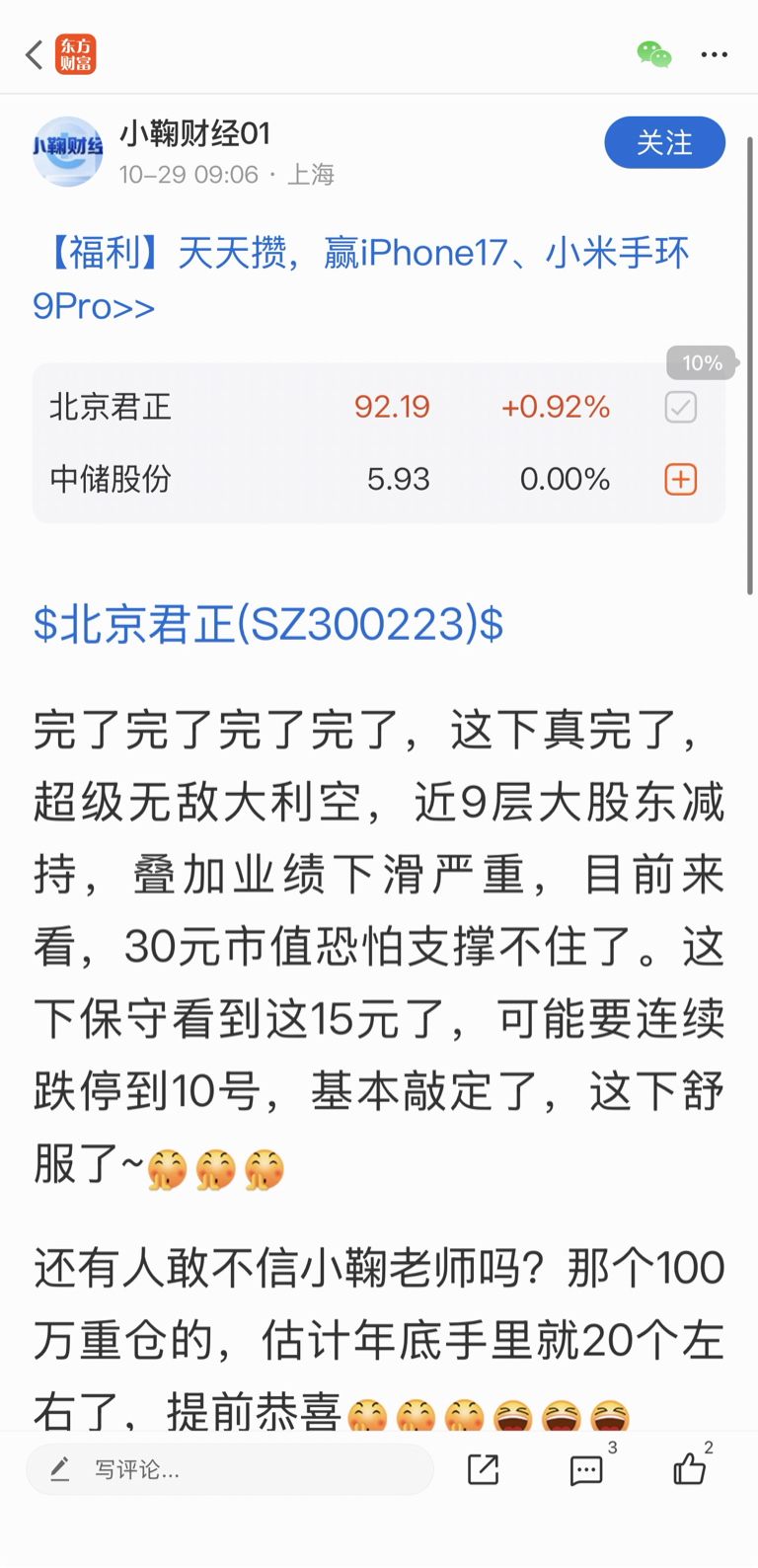温馨提示: 1.根据《证券法》规定,禁止编造、传播虚假信息或者误导性信息,扰乱证券市场;2.用户在本社区发表的所有资料、言论等仅代表个人观点,与本网站立场无关,不对您构成任何投资建议。用户应基于自己的独立判断,自行决定证券投资并承担相应风险。《东方财富社区管理规定》