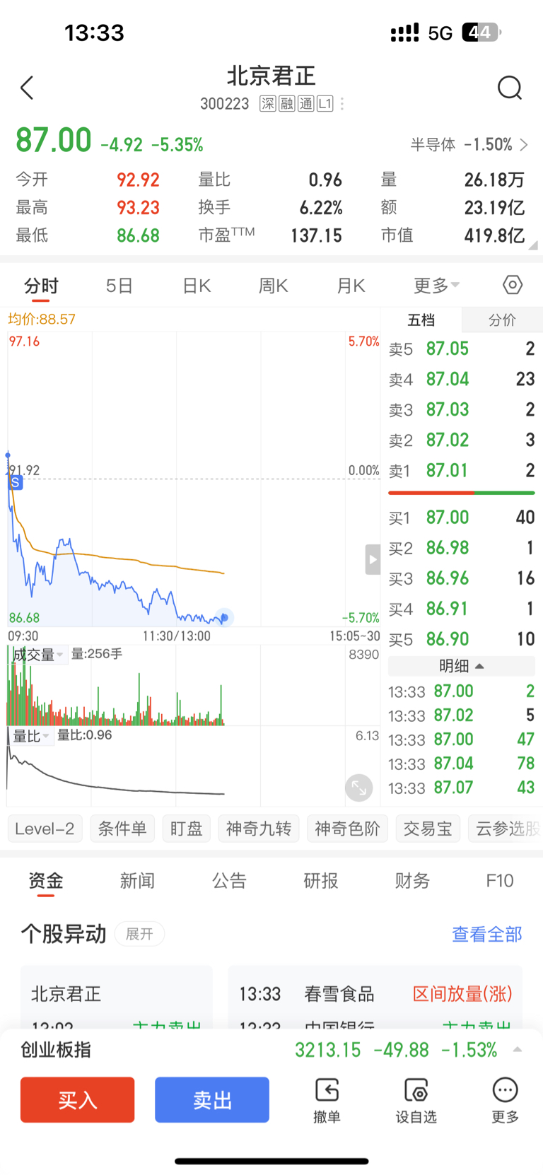 $北京君正(SZ300223)$ 杂毛就是杂毛,涨的少,跌不多,今天运气好,红1个点卖了,删除自选
