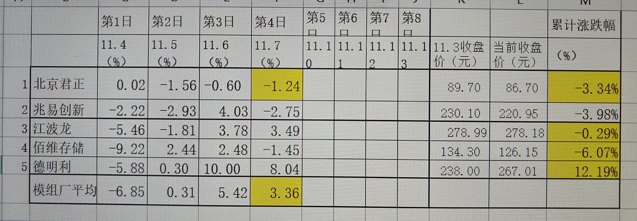 今天君正继续走弱,模组厂继续走强。今天君正-1.24%,模组厂平均+3.36%,君正继续跑输模组厂平均。