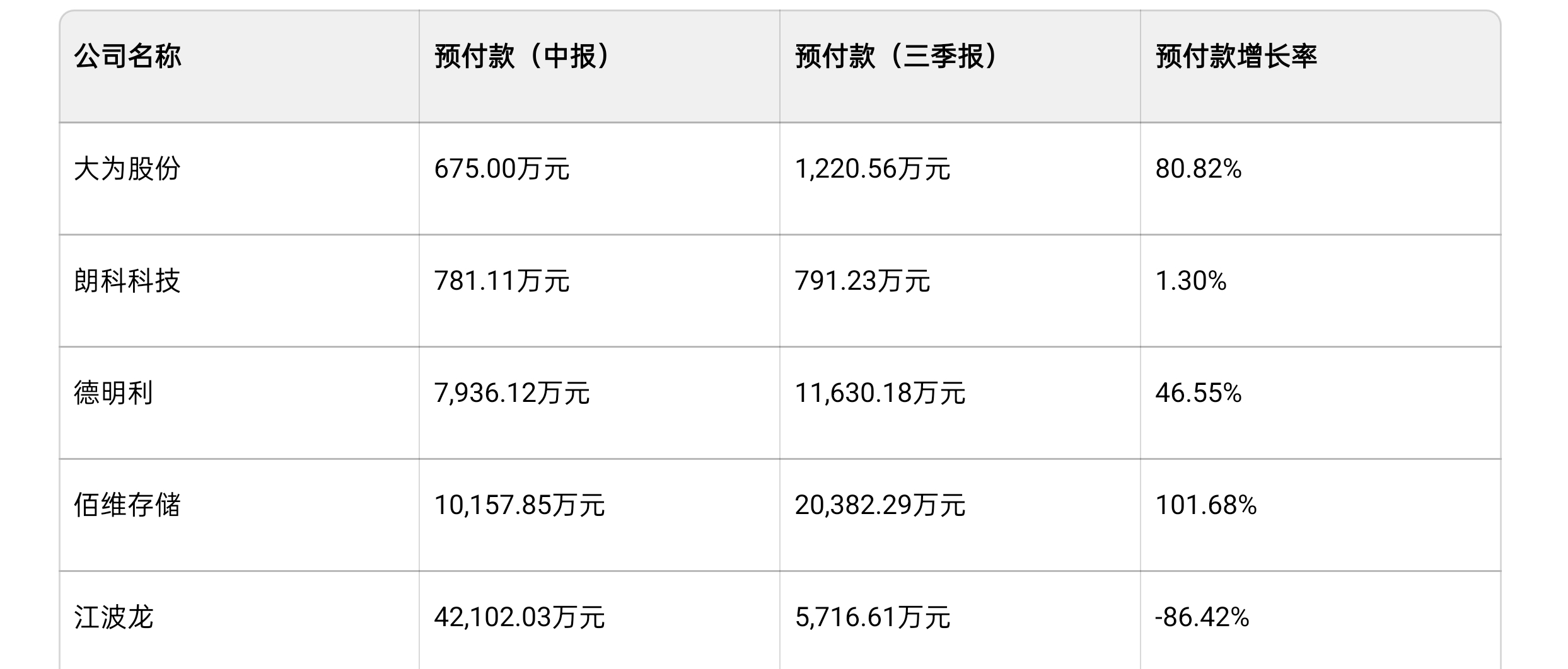二、预付款及增长率: