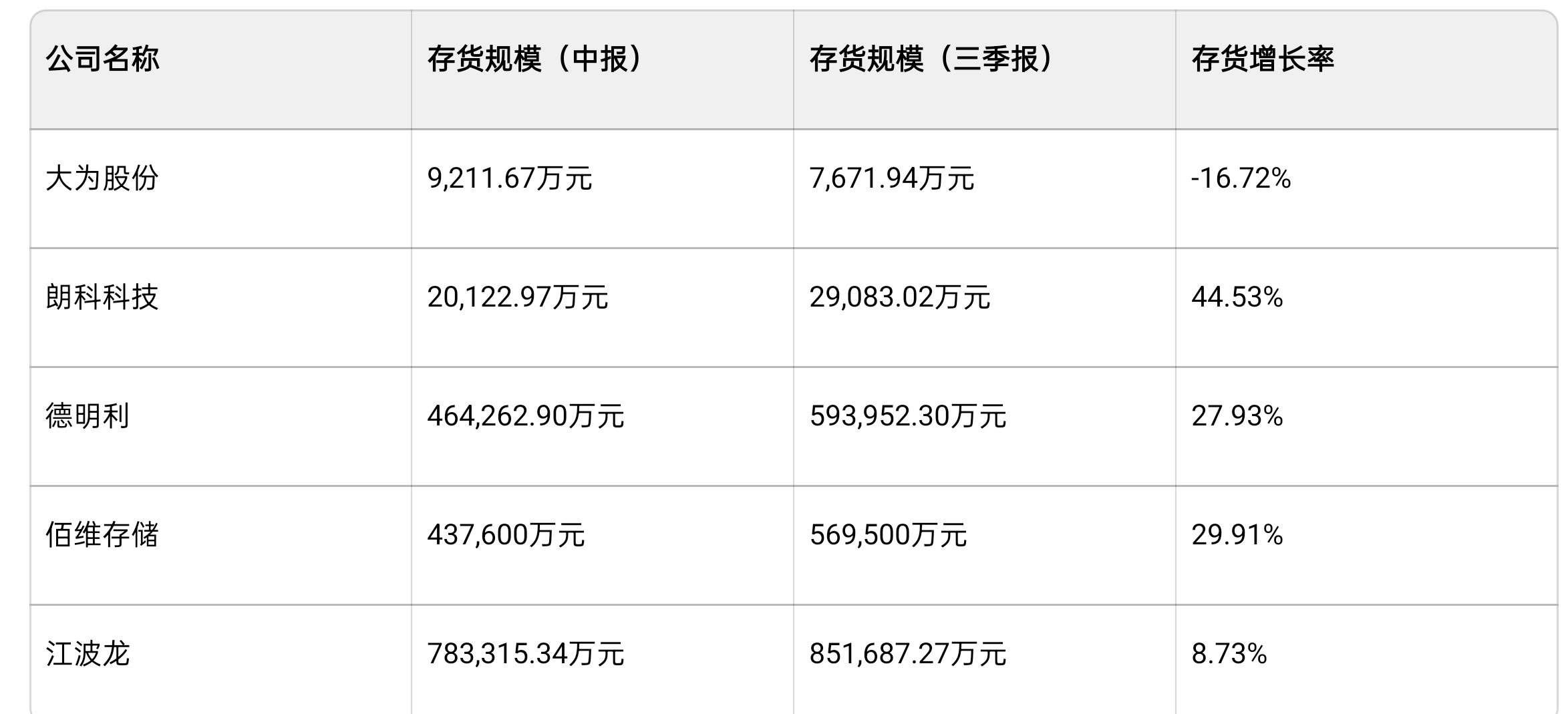 一.存货量及增长率: