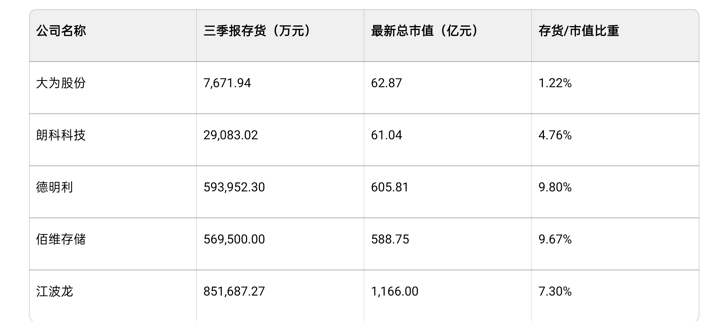 三、三季末存货量/当前总市值占比:
