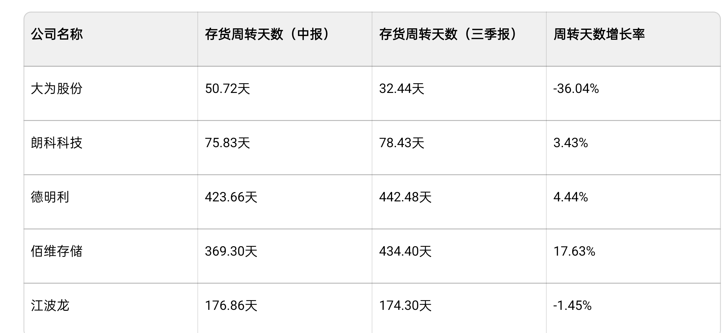 四、存货周转天数及增长率