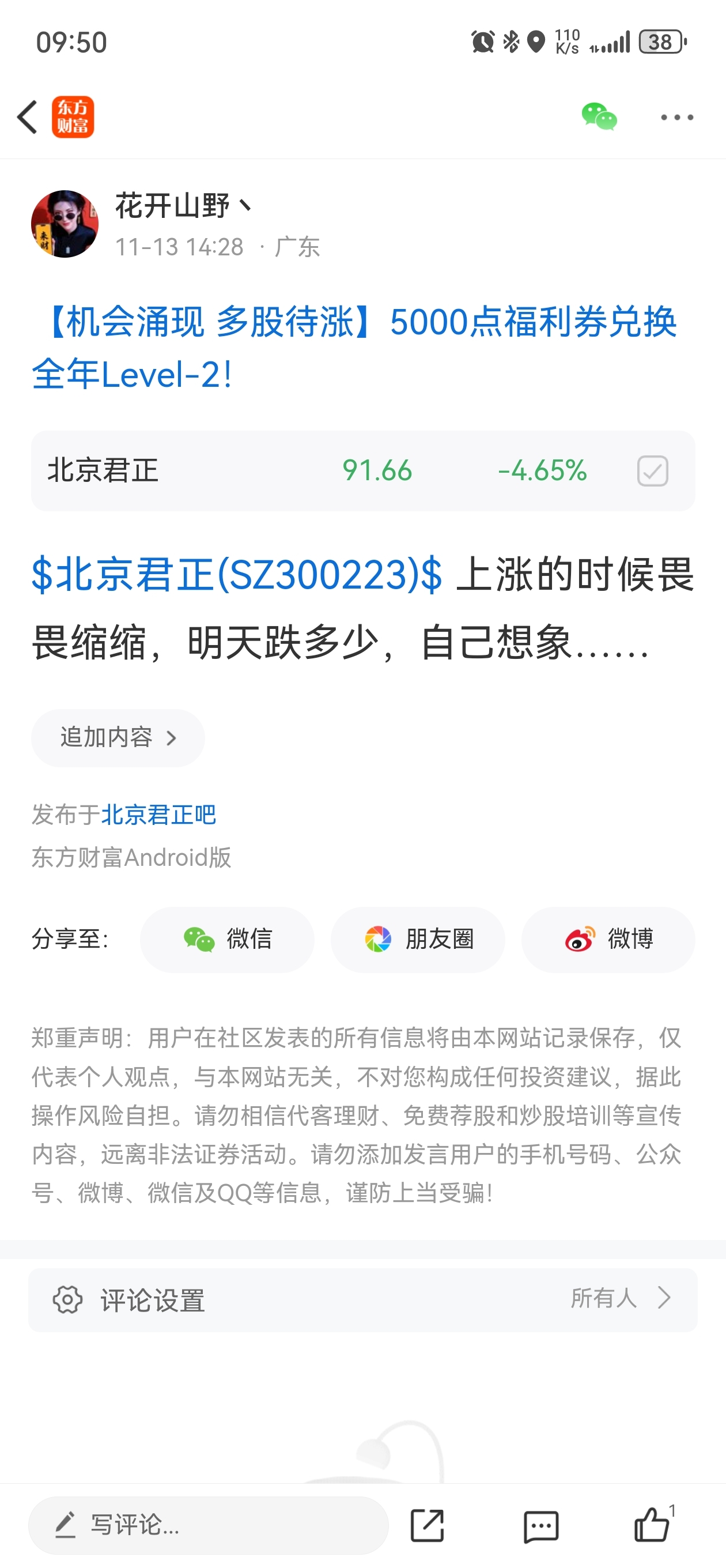 温馨提示: 1.根据《证券法》规定,禁止编造、传播虚假信息或者误导性信息,扰乱证券市场;2.用户在本社区发表的所有资料、言论等仅代表个人观点,与本网站立场无关,不对您构成任何投资建议。用户应基于自己的独立判断,自行决定证券投资并承担相应风险。《东方财富社区管理规定》