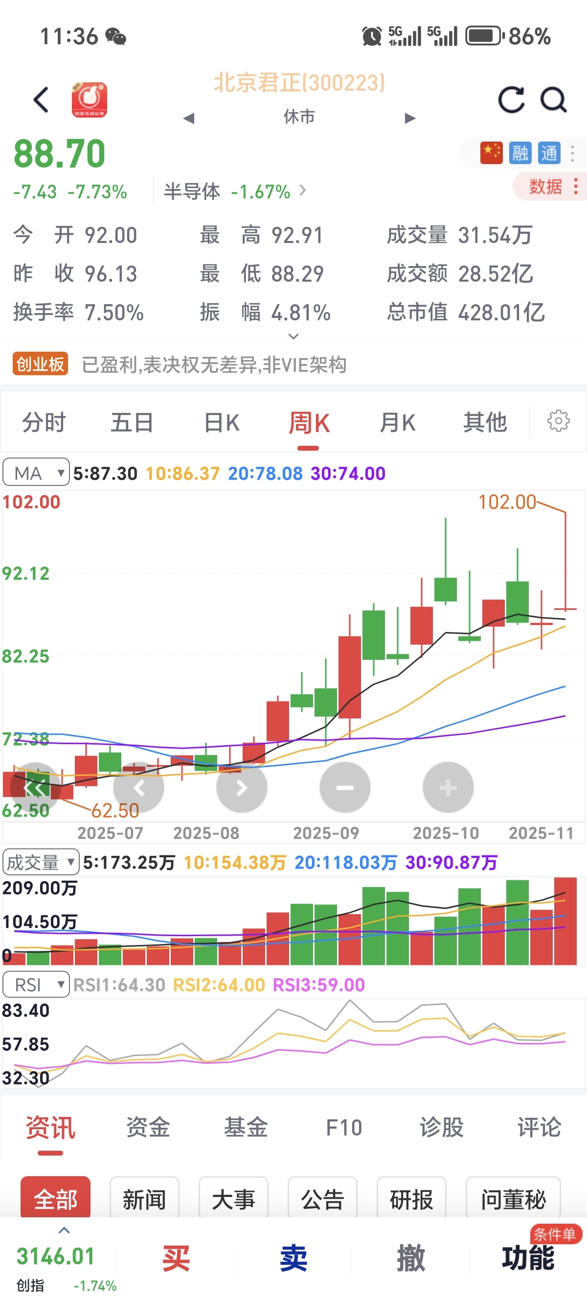 这三根周线收的好,一个单周涨,一个单周中,一个单周白涨!就看下午有没有机会了!