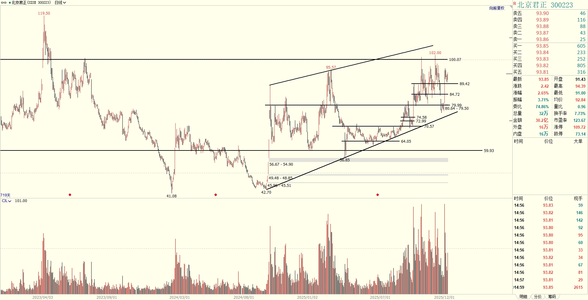 一把直尺打天下/北京君正上升通道内震荡上行,属于上涨结构;64-70之间震荡,为