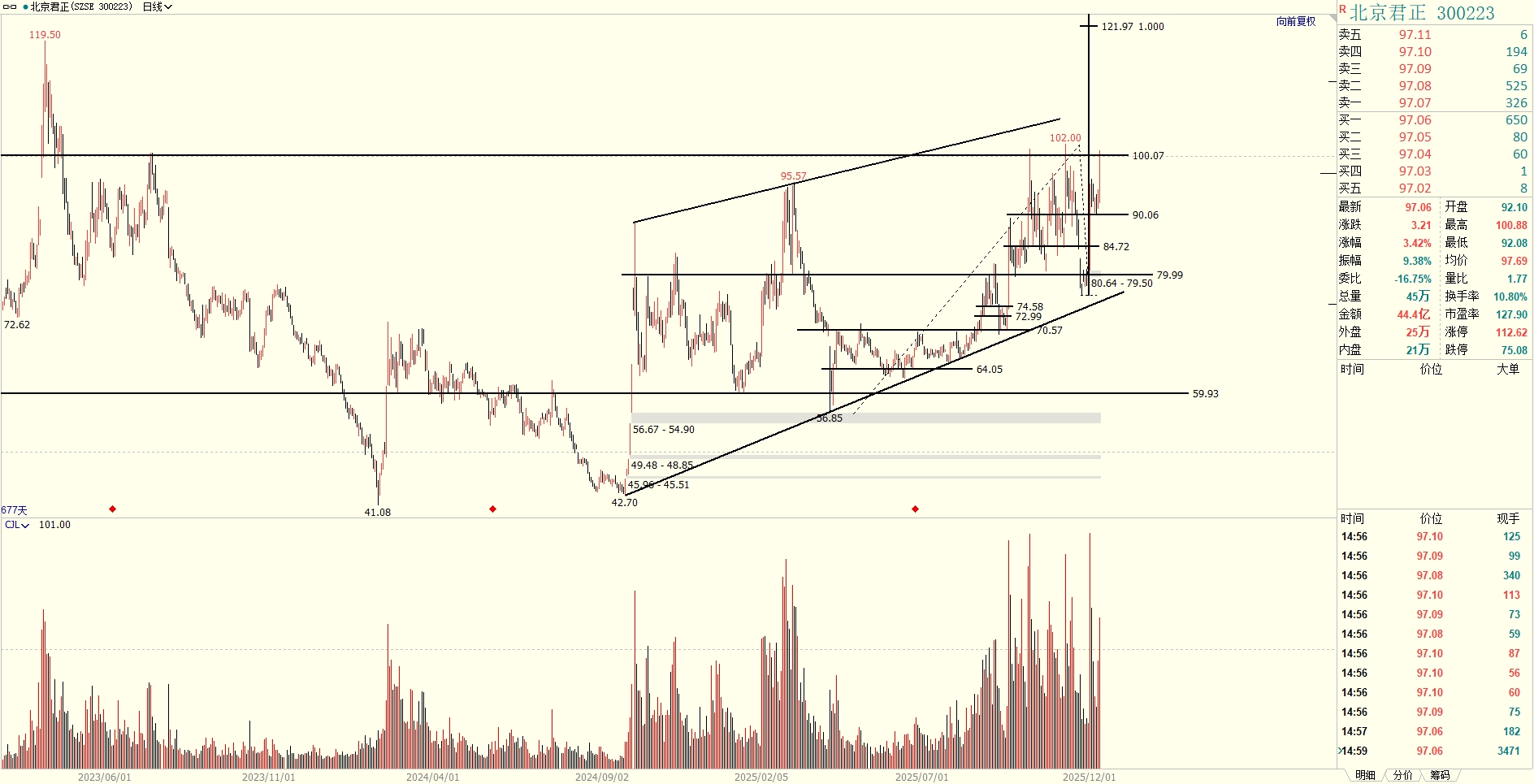 接下来股价持续顶着100小幅波动,应加仓;且突破回踩100,亦应加仓。