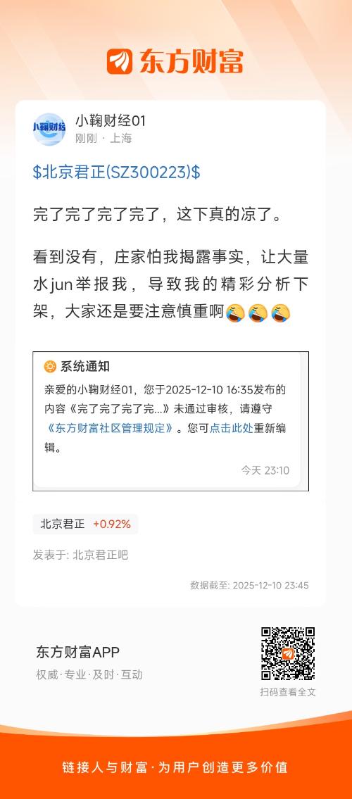 温馨提示: 1.根据《证券法》规定,禁止编造、传播虚假信息或者误导性信息,扰乱证券市场;2.用户在本社区发表的所有资料、言论等仅代表个人观点,与本网站立场无关,不对您构成任何投资建议。用户应基于自己的独立判断,自行决定证券投资并承担相应风险。《东方财富社区管理规定》