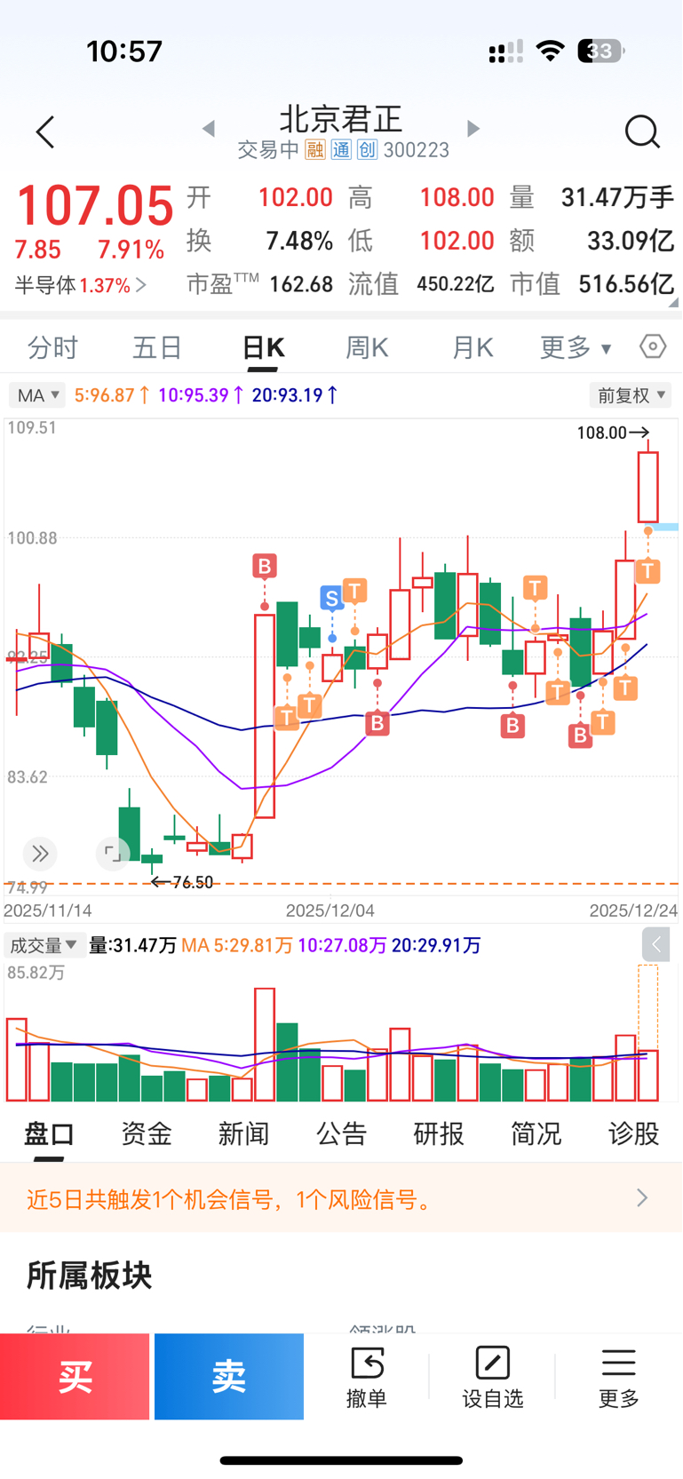 $北京君正(SZ300223)$ 打板终于把成本降下来了