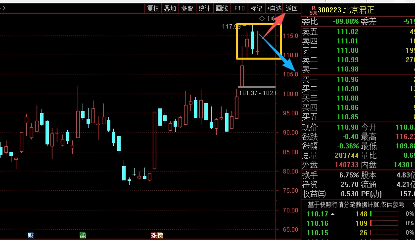 $北京君正(SZ300223)$ 中期趋势走得比较强,一直是震荡拉升的再震荡再拉升的套路,短线这里连续拉升后,正在高位做一个小箱体的震荡,接下来重点就看小箱体的得失,能突破站稳就继续看涨,但如果突破未遂,回落下来跌破箱体下沿支撑,就要注意减仓应对短期的回落风险,不用纠结。#炒股日记# #收盘点评#