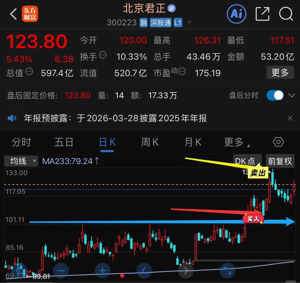 当时咱们第一次定的目标是30的位置,主力只格局到了28附近,我的目标还是不变,通威虽然调整超了预期,但是可以参考钧达股份的走势,在这个时间段内我会一直跟踪,当然我相信在通威的家人们也肯定不是为了追求短线而进来陪伴他的,再给他点时间,不上30誓不停贴!