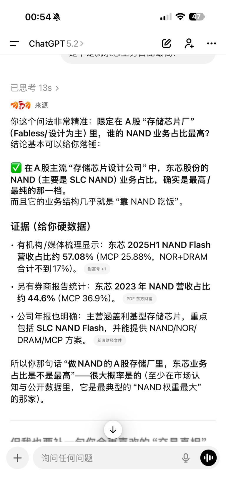 在A股存储芯片厂(尤其Fabless设计公司)里,东芯的 NAND 业务占比确实是最高的梯队,甚至可以说是最“NAND纯”的标的之一。