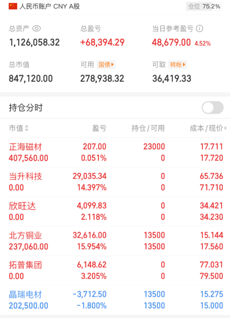 76万一年翻2倍第三十九天接入卖出继续持有欣旺达卖出拓普集团卖出晶瑞电材继续持有