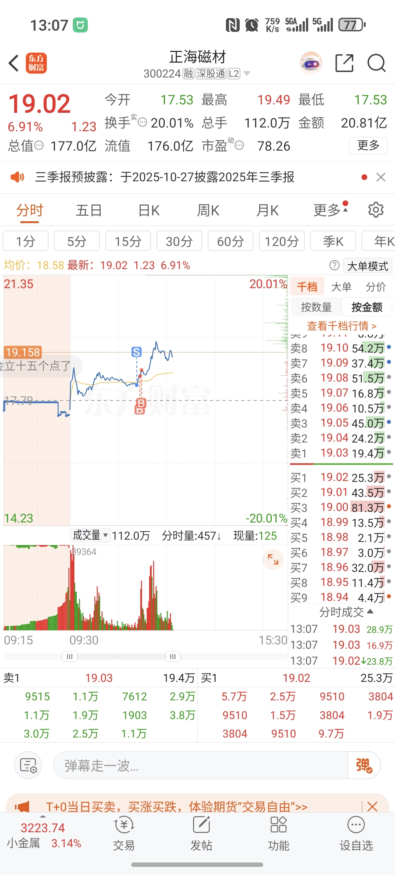 $正海磁材(SZ300224)$ 做反T了,别卖飞了各位
