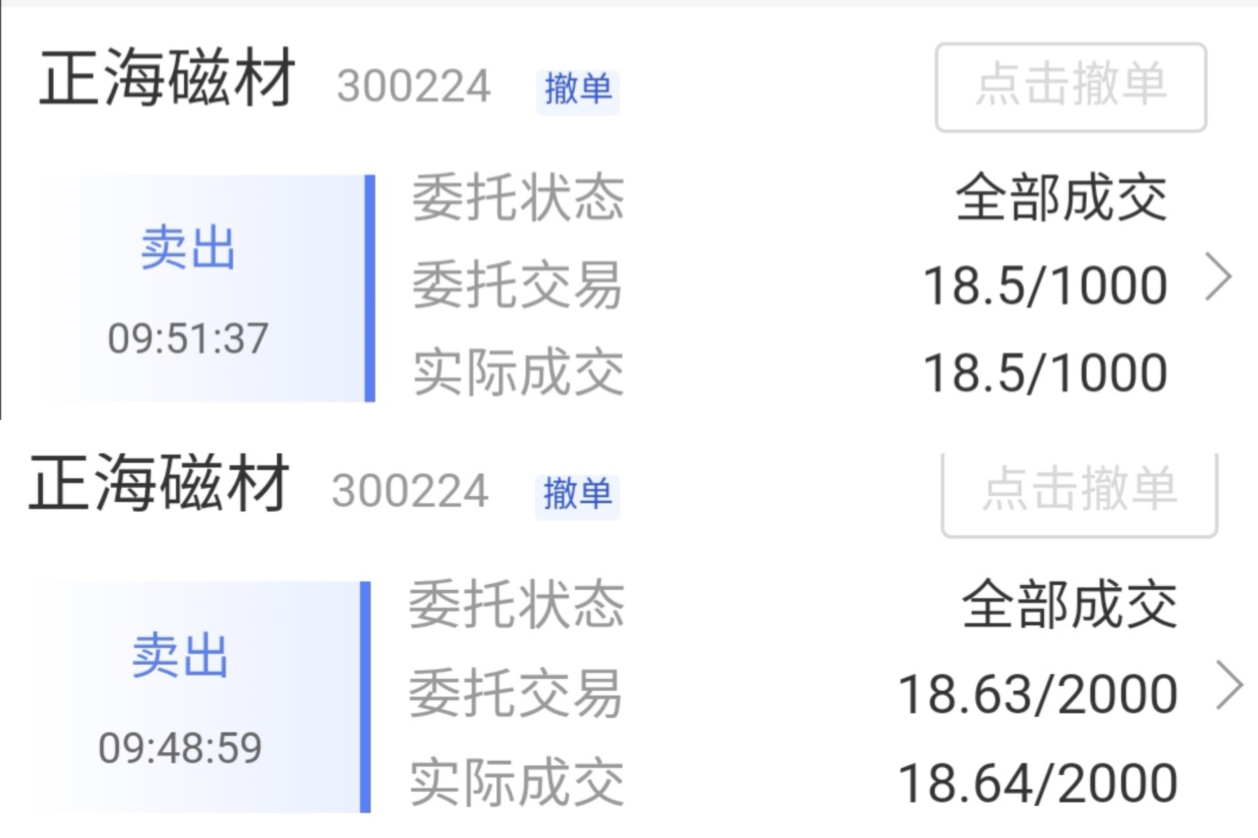 $正海磁材(SZ300224)$ 幸亏红盘时跑了,小有盈利。