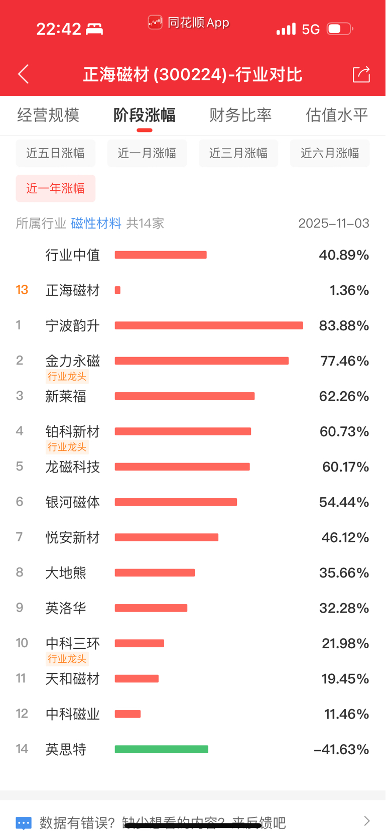 近一年涨幅倒数第一!!!!!注意,英思特是新股
