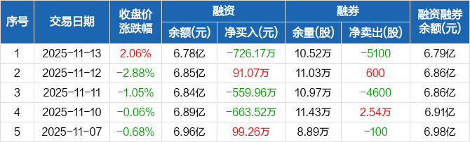 正海磁材:融资净偿还726.17万元,融资余额6.78亿元(11-13)