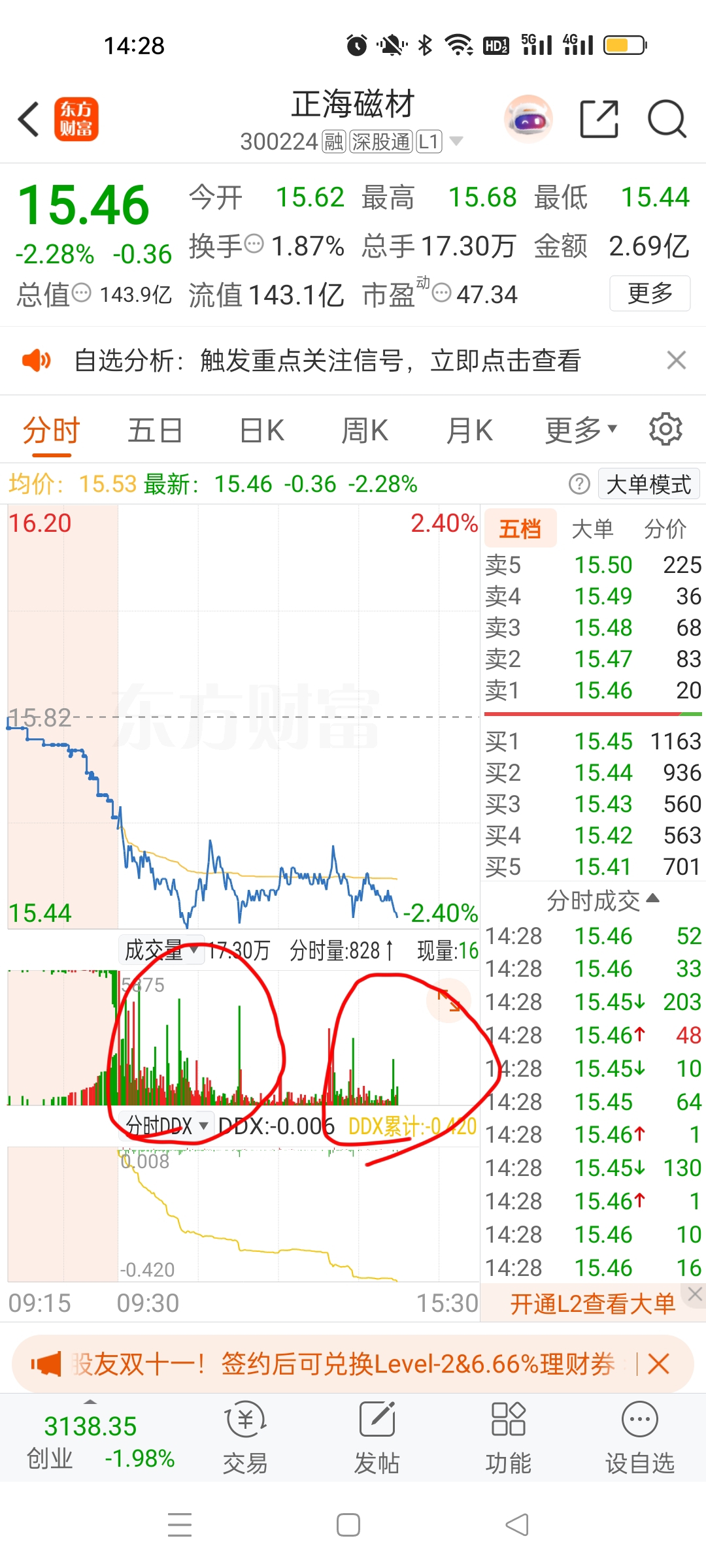 $正海磁材(SZ300224)$ 一个小股票,整天卖彼的这么多,贱!