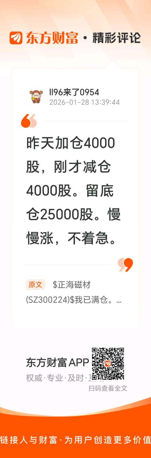 //@ll96来了0954 :昨天加仓4000股,刚才减仓4000股。留底仓25000股。慢慢涨,不着急。