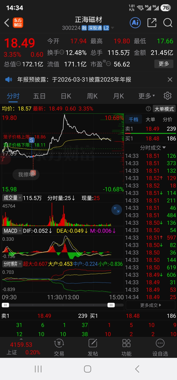 $正海磁材(SZ300224)$ 真服了水下手贱卖出